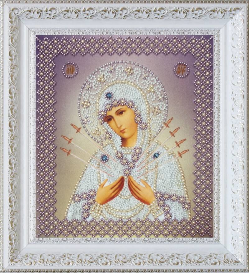 Набор для вышивки бисером Икона Божией Матери Семистрельная" (серебро), Р-328, 18.5х21.5см, ТМ Картины бисером