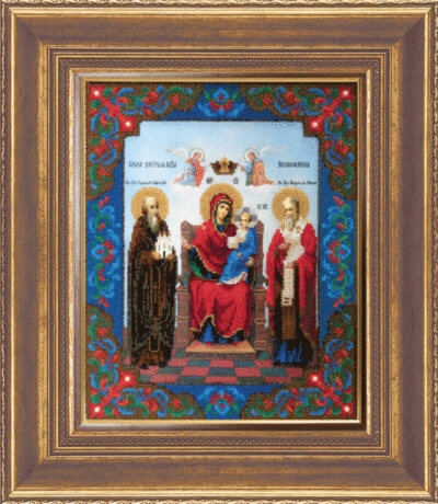 Набор для вышивания бисером Икона Божьей Матери Экономисса содержит подробную инструкцию, символьную схему, чешский бисер Preciosa - 24 цвета, ткань для вышивания с нанесенным рисунком и иглы.