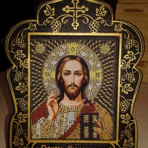 НЕТ В НАЛИЧИИ --- Набор для вышивки иконы бисером в киоте Господь Вседержитель ТМ ArtBest укомплектован всеми необходимыми материалами: рамкой-киотом, схемой из габардина, проклеенного флизелином и чешским бисером Preciosa.