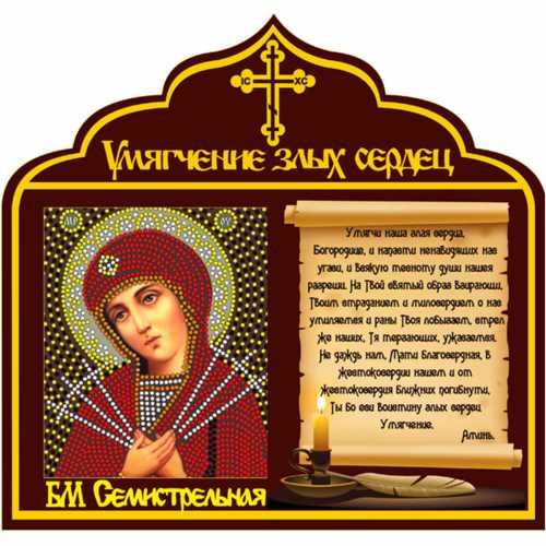 НЕТ В НАЛИЧИИ --- Набор для вышивки иконы бисером в киоте Умиление злых Сердец ТМ ArtBest укомплектован всеми необходимыми материалами: рамкой-киотом, схемой из габардина, проклеенного флизелином и чешским бисером Preciosa.