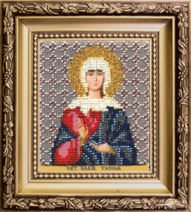 Набор для вышивания бисером Икона святая блаженная Таисия содержит подробную инструкцию, символьную схему, чешский бисер Preciosa - 10 цветов, ткань для вышивания с нанесенным рисунком и иглу.