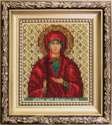 Набор для вышивания бисером Икона святая мученица Неонилла содержит подробную инструкцию, символьную схему, чешский бисер Preciosa - 12 цветов, ткань для вышивания с нанесенным рисунком и иглу.