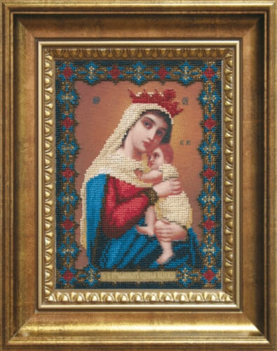Набор для вышивания бисером Икона Божьей Матери Отчаянных единая надежда содержит подробную инструкцию, символьную схему, чешский бисер Preciosa - 18 цветов, ткань для вышивания с нанесенным рисунком, металлизированная нить золотого цвета и иглы.
