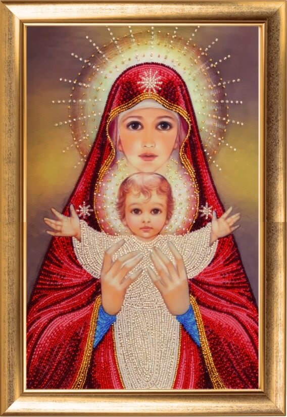 Набор для вышивания бисером Мадонна и дитя ТМ Butterfly содержит ткань с нанесенным цветным рисунком, чешский бисер Preciosa (9 цветов), иглу и подробную инструкцию.
