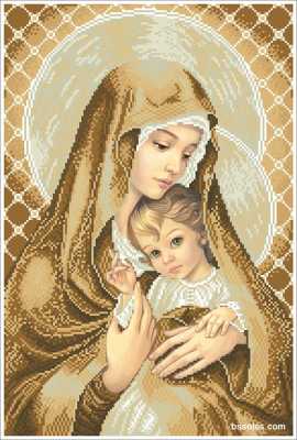 Набор для вышивания бисером Мадонна с младенцем (покорность), арт. МДП-36, содержит схему с высокой детализацией, выполненную на плотном сатиновом шелке (пр-во Германия), и с краями, обработанными оверлоком, чешский бисер Preciosa и иглу.