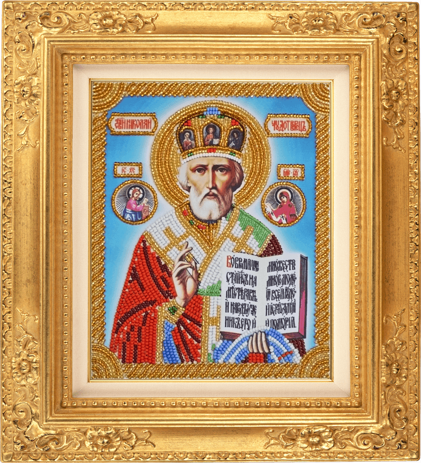 Набор для вышивки бисером Николай Чудотворец, ИМН-003, Тэла Артис (Tela Artis) содержит атласную схему с нанесенным ярким рисунком, продублированную флизелином, чешский бисер Preciosa с 10% запасом, иглу и инструкцию по вышиванию.