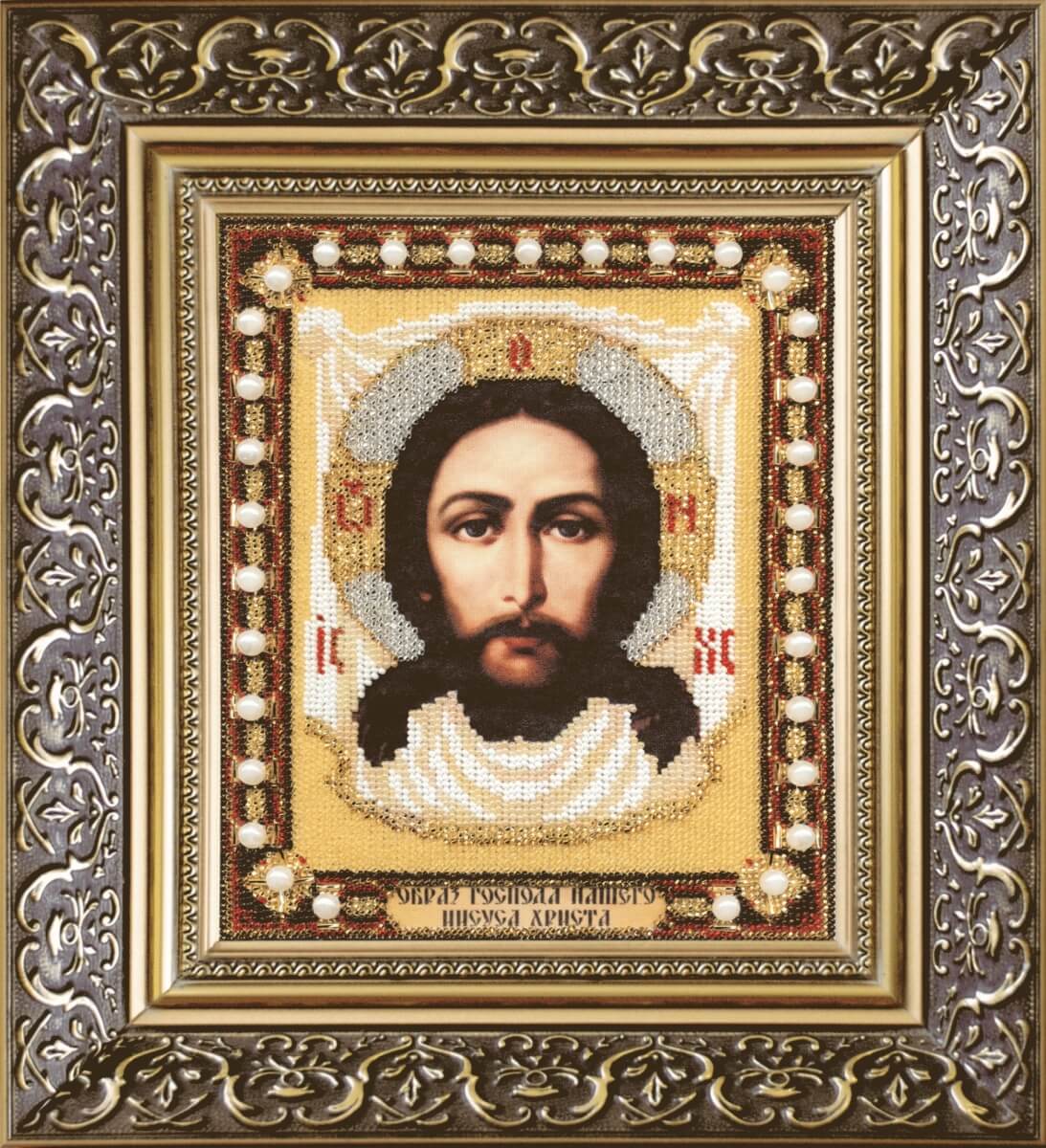 Набор для вышивания бисером Образ Господа Нашего Иисуса Христа содержит подробную инструкцию, символьную схему, чешский бисер Preciosa - 10 цветов, ткань для вышивания с нанесенным рисунком и иглу.