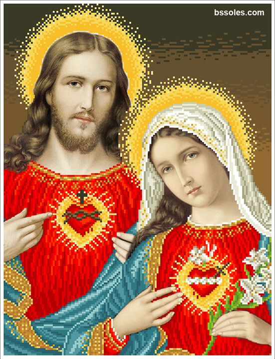Набор для вышивки бисером Открытые сердца Иисуса и Марии, ВСІМ-94, 31.1х40.9см, БС Солес