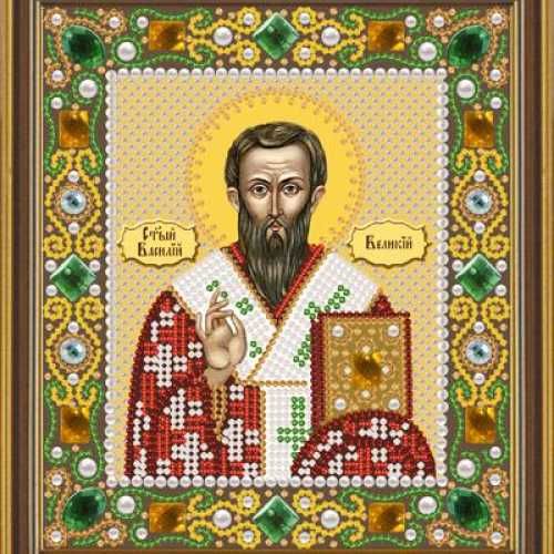 Набор для вышивки бисером Свт. Василий Великий компании Новая Слобода состоит из атласа с нанесенным изображением, бисера Slovenska Busa, пришивных камней, бусин, иглы для вышивки бисером, подробной инструкции.
