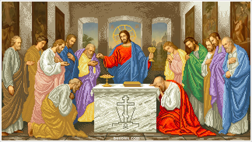Набор для вышивания бисером Святая Евхаристия (Большая), арт. СЄ-В-226, содержит схему с высокой детализацией, выполненную на плотном сатиновом шелке (пр-во Германия), и с краями, обработанными оверлоком, чешский бисер Preciosa и иглу.