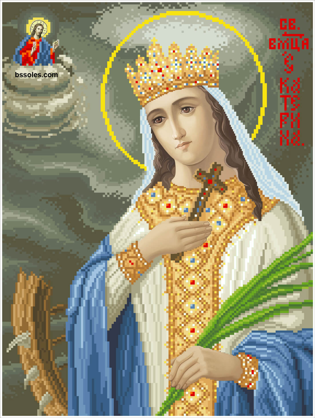 Набор для вышивания бисером Святая мученица Екатерина (большая), арт. СМК-В-232, содержит схему с высокой детализацией, выполненную на плотном сатиновом шелке (пр-во Германия), и с краями, обработанными оверлоком, чешский бисер Preciosa и иглу.