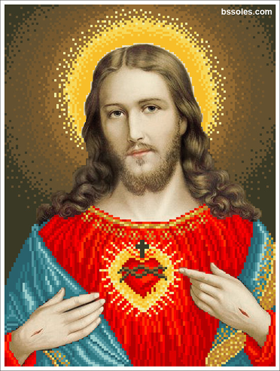 Набор для вышивания бисером Сердце Иисуса, арт. СІ-01-90, содержит схему с высокой детализацией, выполненную на плотном сатиновом шелке (пр-во Германия), и с краями, обработанными оверлоком, чешский бисер Preciosa и иглу.