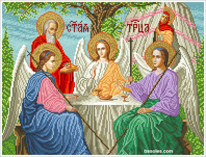 Набор для вышивания бисером Троица Ветхозаветная, арт. ТС-64, содержит схему с высокой детализацией, выполненную на плотном сатиновом шелке (пр-во Германия), и с краями, обработанными оверлоком, чешский бисер Preciosa и иглу.