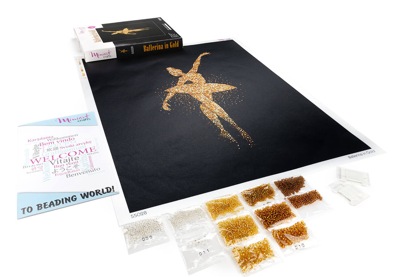 Набор для вышивания бисером Балерина в золоте, арт. MC-55028, ТМ Miniart Crafts содержит схему, напечатанную на сатине, бисер Preciosa (Чехия), иглу и нить для вышивки.