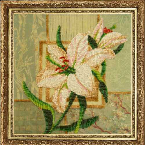 Набор для вышивки бисером с частичной зашивкой Белая лилия, арт. bf252, ТМ Butterfly содержит атласную схему, бисер Preciosa (Чехия, 10 цветов), инструкцию и иглу для вышивания.