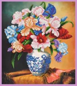 Набор для вышивания бисером Букет ирисов, Р-396, состоит из габардиновой схемы со стойкими цветами, которые не боятся стирки и не выцветают, чешского бисера Preciosa, иструкции и бисерной иглы.