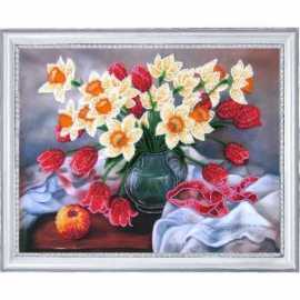 Набор для вышивки бисером с частичной зашивкой Ваза с нарциссами, арт. bf285, ТМ Butterfly содержит атласную схему, бисер Preciosa (Чехия, 12 цветов), инструкцию и иглу для вышивания.