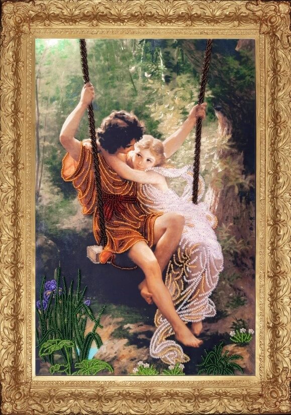 Набор для вышивки бисером с частичной зашивкой Весна. По мотивам Пьера Огюста Кота, арт. bf821, ТМ Butterfly содержит атласную схему, бисер Preciosa (Чехия, 11 цветов), инструкцию и иглу для вышивания.