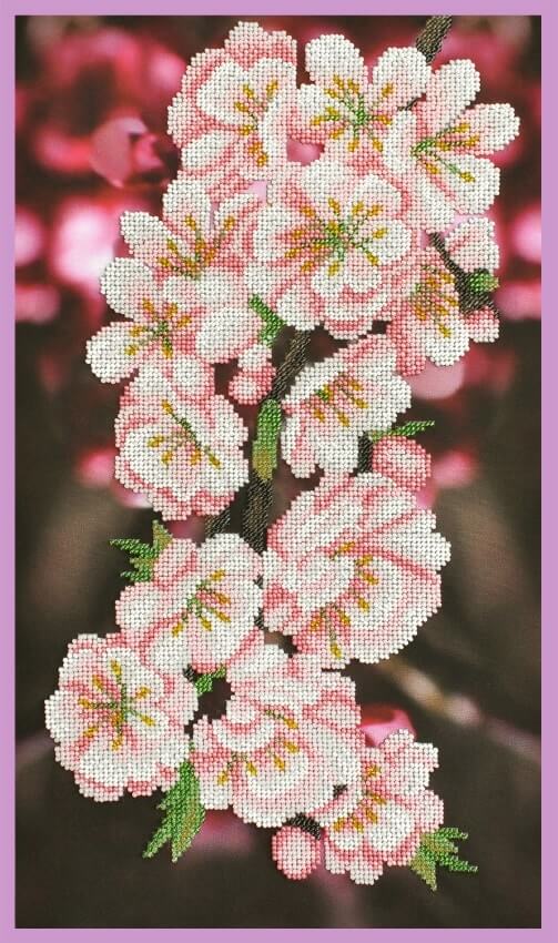 Набор для вышивки бисером Ветка сакуры, Р-350 состоит из габардиновой схемы со стойкими цветами, которые не боятся стирки и не выцветают, чешского бисера Preciosa (или TOHO и бусин), иструкции и двух бисерных игл.