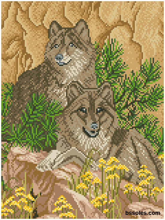 Набор для вышивания бисером Волки, арт. ДПм-01-223, содержит схему с высокой детализацией, выполненную на плотном сатиновом шелке (пр-во Германия), и с краями, обработанными оверлоком, чешский бисер Preciosa и иглу.