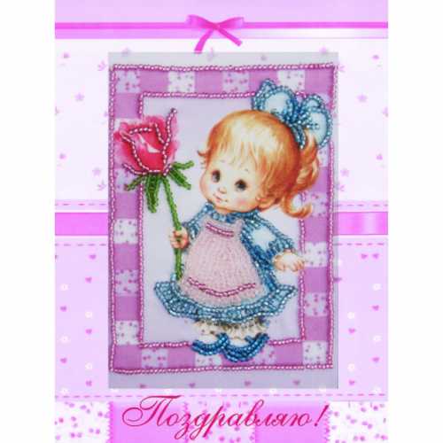Набор для вышивки бисером с частичной зашивкой Девочка с розой, арт. bf736, ТМ Butterfly содержит атласную схему, бисер Preciosa (Чехия, 5 цветов), инструкцию и иглу для вышивания.