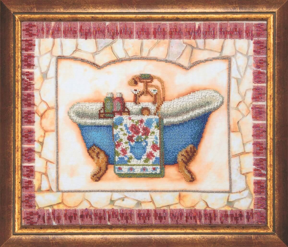 Набор для вышивания бисером Купание содержит подробную инструкцию, символьную схему, чешский бисер Preciosa - 21 цвет, ткань для вышивания с нанесенным рисунком и иглу.
