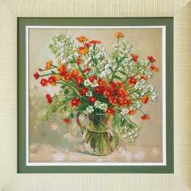 Набор для вышивания бисером Летний букет содержит подробную инструкцию, символьную схему, чешский бисер Preciosa - 10 цветов, мулине Madeira - 1 цвет, ткань для вышивания с нанесенным рисунком и иглы.