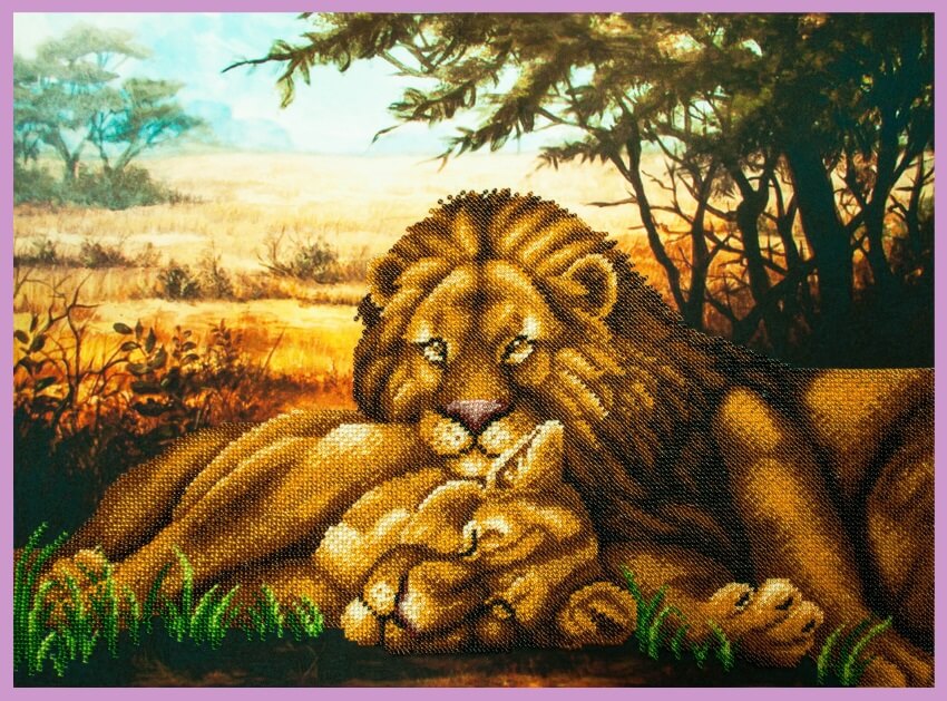 Набор для вышивки бисером Львиная нежность, Р-346, 45х32.5см, ТМ Картины бисером