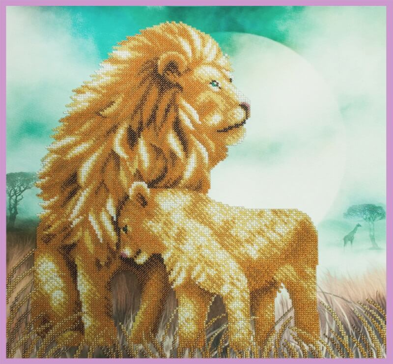 Набор для вышивки бисером Львы, Р-343 состоит из габардиновой схемы со стойкими цветами, которые не боятся стирки и не выцветают, чешского бисера Preciosa (или TOHO и бусин), иструкции и двух бисерных игл.