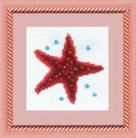 Набор для вышивания бисером Морская звезда содержит подробную инструкцию, символьную схему, канву 5,5 (55 клеточек в 10 см), чешский бисер Preciosa и иглу.