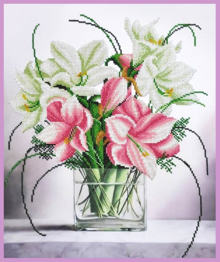 Набор для вышивки бисером Нежный букет, Р-354 состоит из габардиновой схемы со стойкими цветами, которые не боятся стирки и не выцветают, чешского бисера Preciosa (или TOHO и бусин), иструкции и двух бисерных игл.
