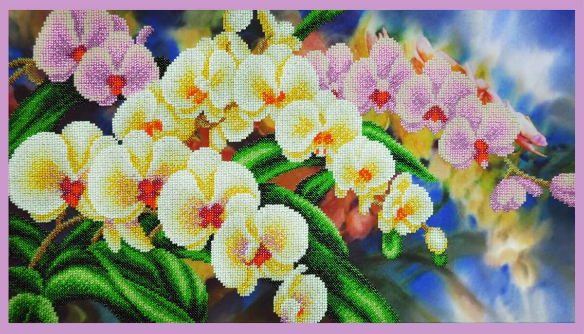 Набор для вышивки бисером Орхидеи в саду, P-308 состоит из габардиновой схемы со стойкими цветами, которые не боятся стирки и не выцветают, чешского бисера Preciosa (или TOHO и бусин), иструкции и двух бисерных игл.