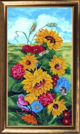 Набор для вышивки бисером с частичной зашивкой Осень. Подсолнухи, арт. bf295, ТМ Butterfly содержит атласную схему, бисер Preciosa (Чехия, 10 цветов), инструкцию и иглу для вышивания.