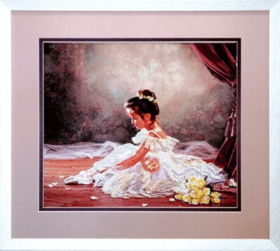 Набор для вышивания бисером Первое выступление содержит подробную инструкцию, символьную схему, чешский бисер Preciosa - 10 цветов, мулине металлизированное синего и розового цветов, ткань для вышивания с нанесенным рисунком, бисерные иглы.