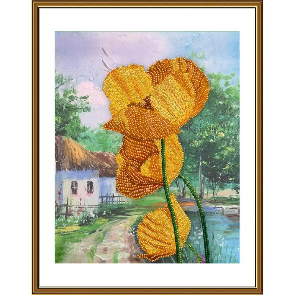 Набор для вышивки бисером Поцелуй солнца компании Новая Слобода состоит из габардина с нанесенным изображением, бисера Slovenska Busa, иглы и нити для вышивки бисером, подробной инструкции.