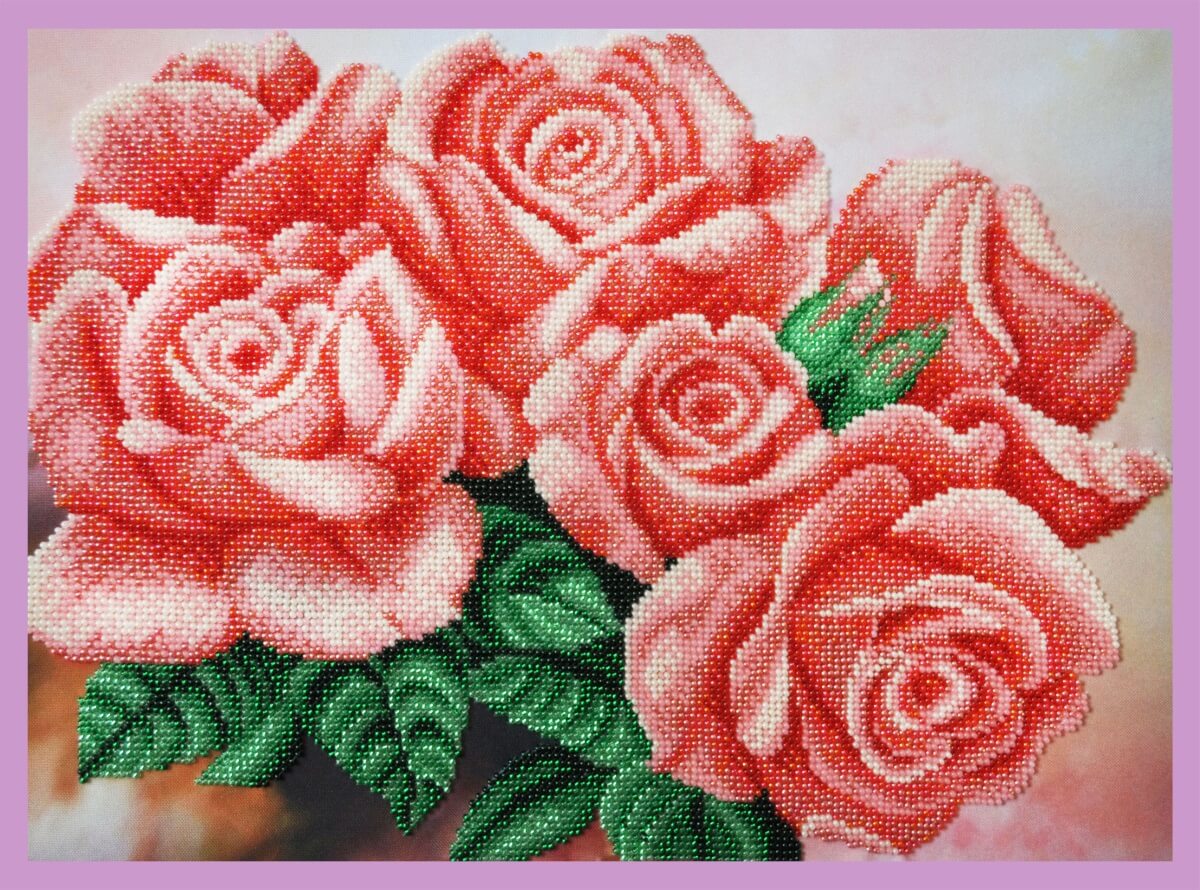 Набор для вышивки бисером Розовые розы, P-293 состоит из габардиновой схемы со стойкими цветами, которые не боятся стирки и не выцветают, чешского бисера Preciosa (или TOHO и бусин), иструкции и двух бисерных игл.