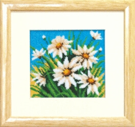 Набор для вышивания бисером Ромашки содержит подробную инструкцию, символьную схему, канву 5,5 (55 клеточек в 10 см), чешский бисер Preciosa и иглу.