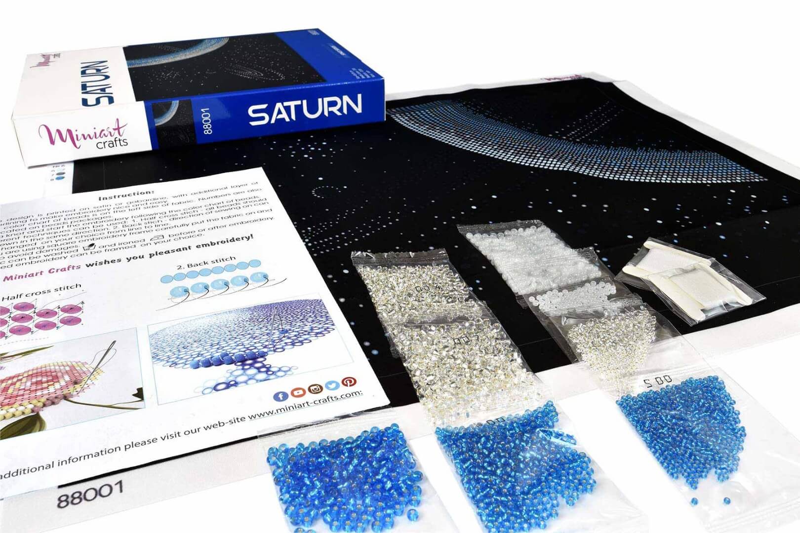 Набор для вышивания бисером Сатурн, арт. MC-88001, ТМ Miniart Crafts содержит схему, напечатанную на сатине, бисер Preciosa (Чехия), иглу и нить для вышивки.