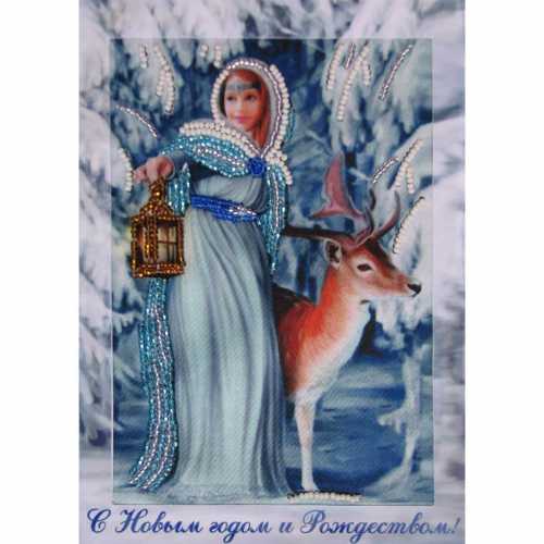 Набор для вышивки бисером с частичной зашивкой Снегурочка, арт. bf702, ТМ Butterfly содержит атласную схему, бисер Preciosa (Чехия, 5 цветов), инструкцию и иглу для вышивания.