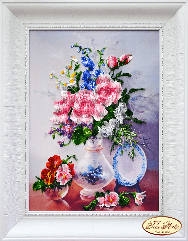 Набор для вышивки бисером Утонченный натюрморт, НТК-021, Тэла Артис (Tela Artis) содержит атласную схему с нанесенным ярким рисунком, продублированную флизелином, чешский бисер Preciosa с 10% запасом, иглу и инструкцию по вышиванию.