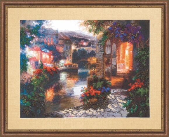 Набор для вышивания бисером Уютный дворик содержит подробную инструкцию, символьную схему, чешский бисер Preciosa - 26 цветов, ткань для вышивания с нанесенным рисунком, бисерную иглу.