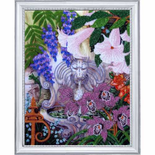 Набор для вышивки бисером с частичной зашивкой Фонтан в саду, арт. bf229, ТМ Butterfly содержит атласную схему, бисер Preciosa (Чехия, 17 цветов), инструкцию и иглу для вышивания.