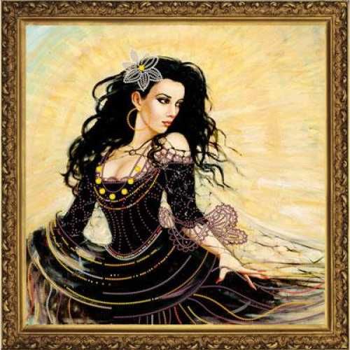 СНЯТ С ПРОИЗВОДСТВА. Набор для вышивки бисером Цыганка компании Новая Слобода состоит из атласа с нанесенным изображением, бисера Preciosa (Чехия), пришивных камней, иглы и нити для вышивки бисером, подробной инструкции.