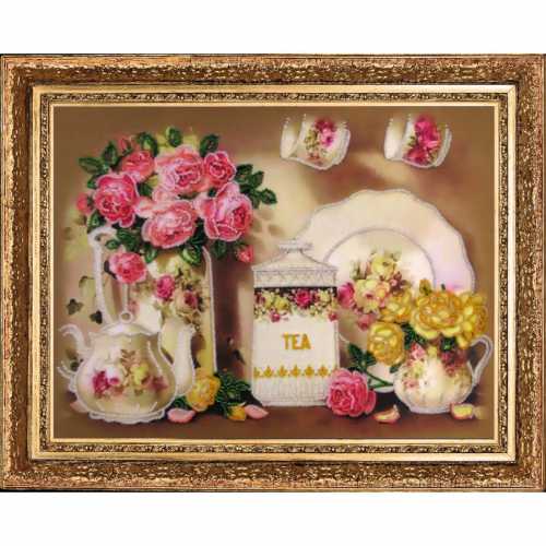 Набор для вышивки бисером с частичной зашивкой Чайный сервиз, арт. bf269, ТМ Butterfly содержит атласную схему, бисер Preciosa (Чехия, 5 цветов), инструкцию и иглу для вышивания.