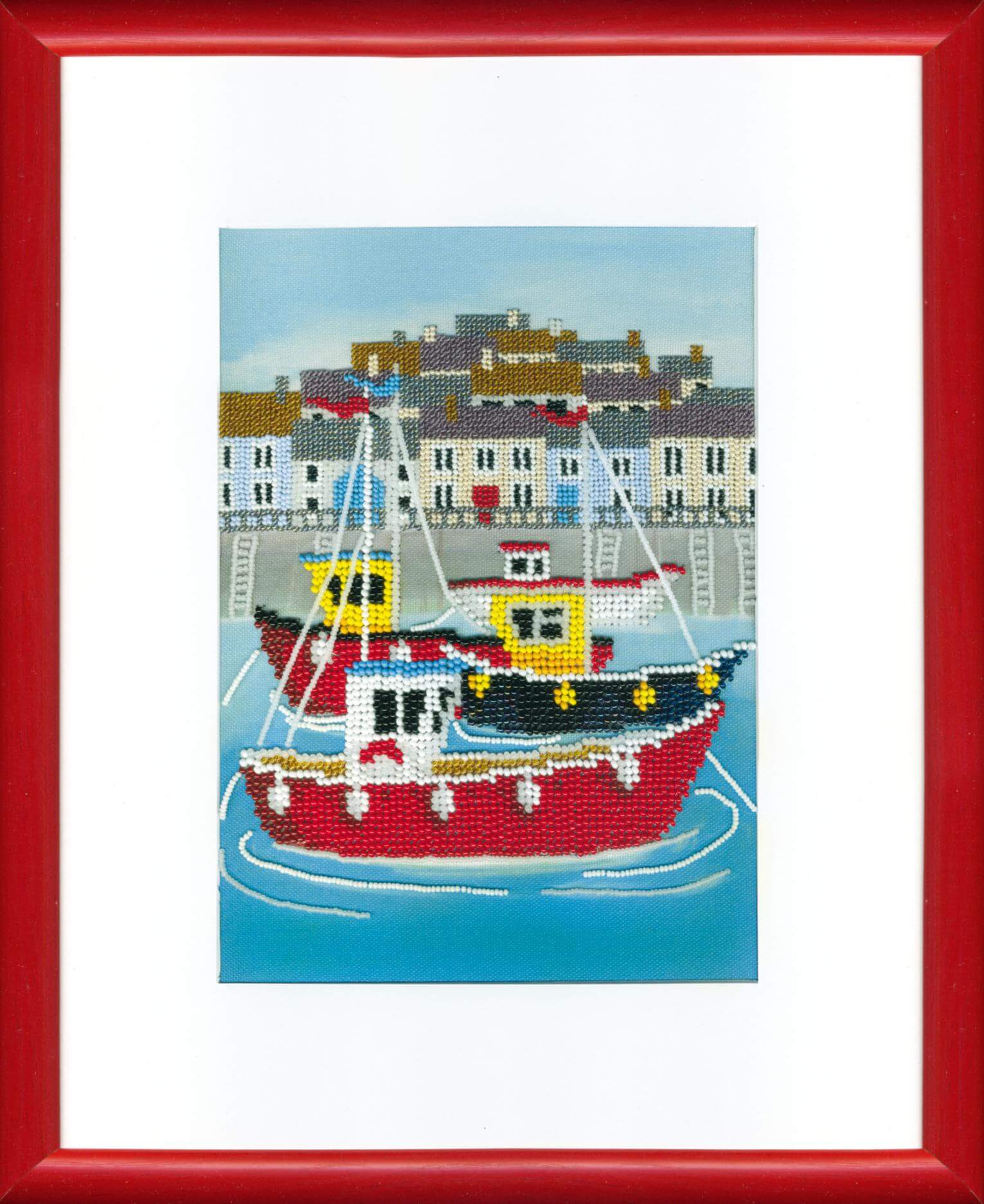Набор для вышивания бисером Яркая гавань содержит подробную инструкцию, символьную схему, ткань для вышивания с нанесенным рисунком, чешский бисер Preciosa - 22 цвета и иглу.