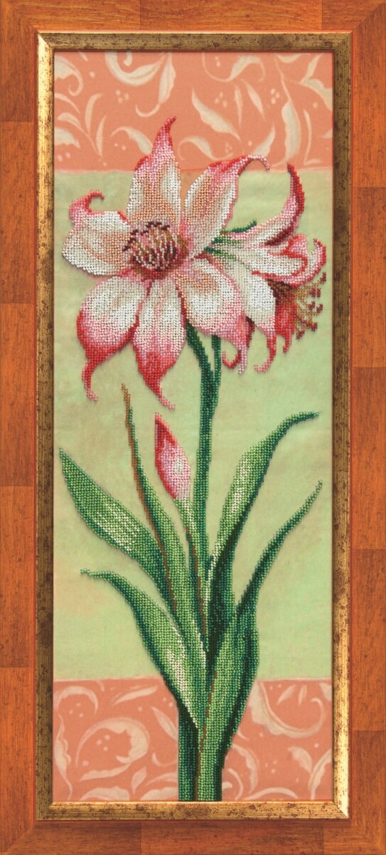 Набор для вышивания бисером Гиппеаструм розовый содержит подробную инструкцию, символьную схему, чешский бисер Preciosa - 20 цветов, ткань для вышивания с нанесенным рисунком и иглу.