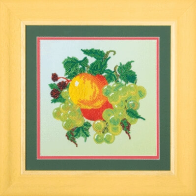 Набор для вышивания бисером Фруктовое наслаждение содержит подробную инструкцию, символьную схему, чешский бисер Preciosa - 18 цветов, ткань для вышивания с нанесенным рисунком и иглу.