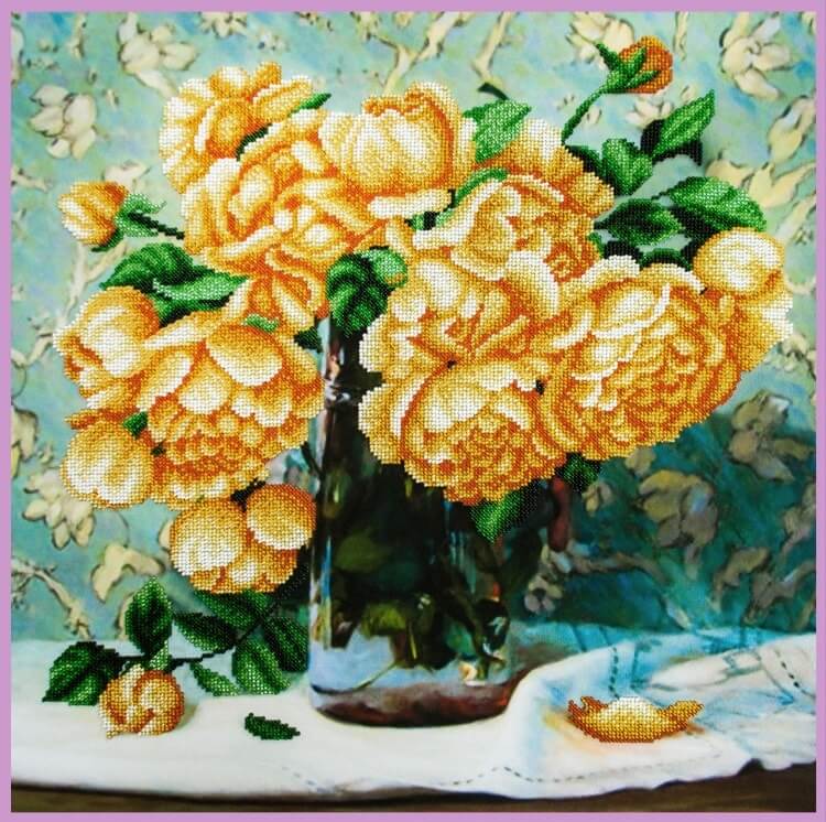 Набор для вышивки бисером Натюрморт с розами, Р-349 состоит из габардиновой схемы со стойкими цветами, которые не боятся стирки и не выцветают, чешского бисера Preciosa (или TOHO и бусин), иструкции и двух бисерных игл.