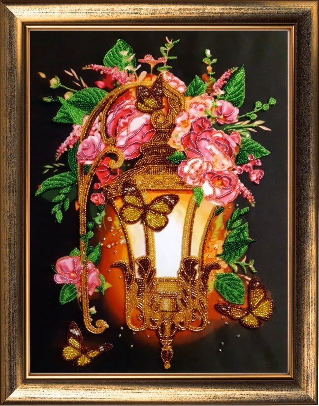 Набор для вышивки бисером с частичной зашивкой Цветочный фонарь, арт. bf130, ТМ Butterfly содержит атласную схему, бисер Preciosa (Чехия, 11 цветов), инструкцию и иглу для вышивания.