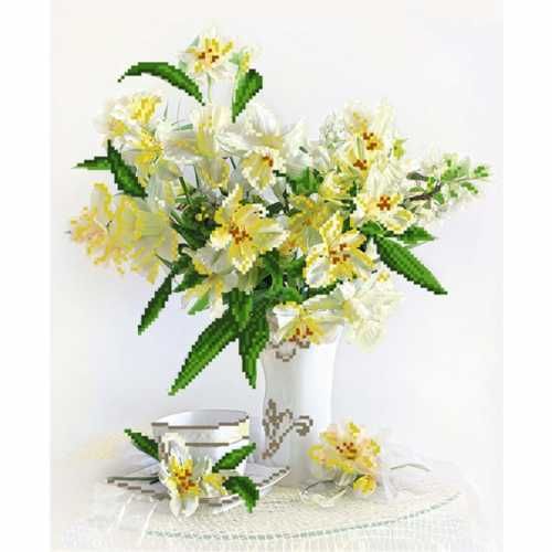 Набор для вышивки бисером Букет нежности (65Б) ТМ Матренин посад содержит холст с нанесенным рисунком, чешский бисер Preciosa (7 цветов), бисерную нить и иглу, а также инструкцию по вышивке.